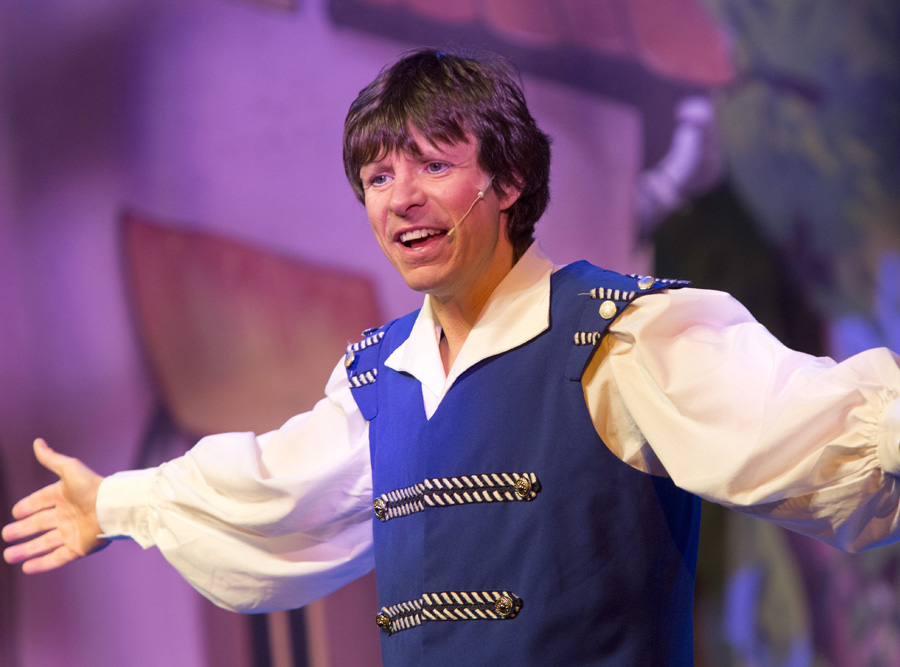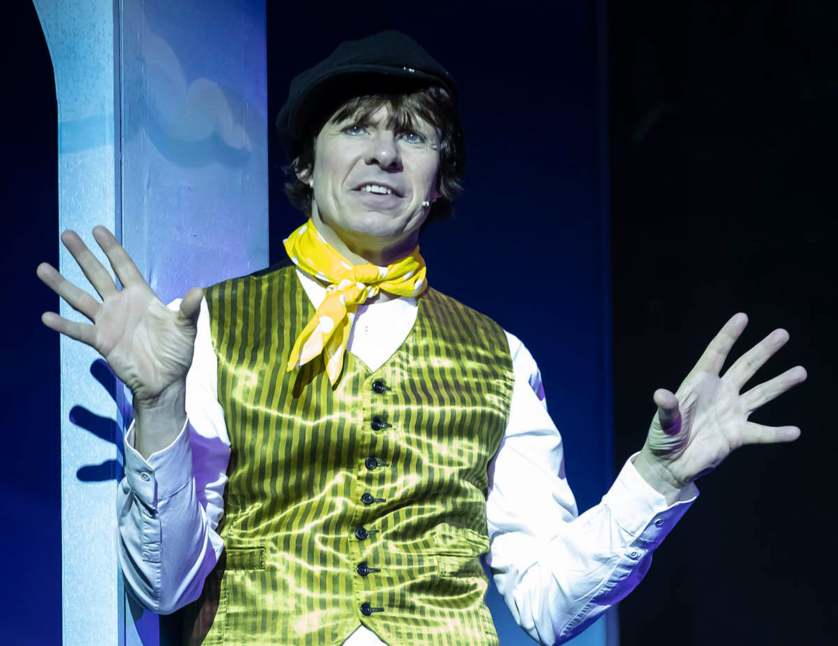 “For the second year in succession, local lad Steve Walls returns to the Playhouse panto in the role of principal comic. Having excelled as Muddles in last year’s production of Snow White and the Seven Dwarfs, this year he takes the role of Wishee Washee and ups his game yet again. It is with total expertise that he establishes a rapport with the children in the audience, who are all thrilled to be part of his ‘gang’, yet his near-the-knuckle gags (which go straight over the kids’ heads) make him a firm favourite with the adults, too. Only a comic of the highest calibre is capable of achieving such a feat”