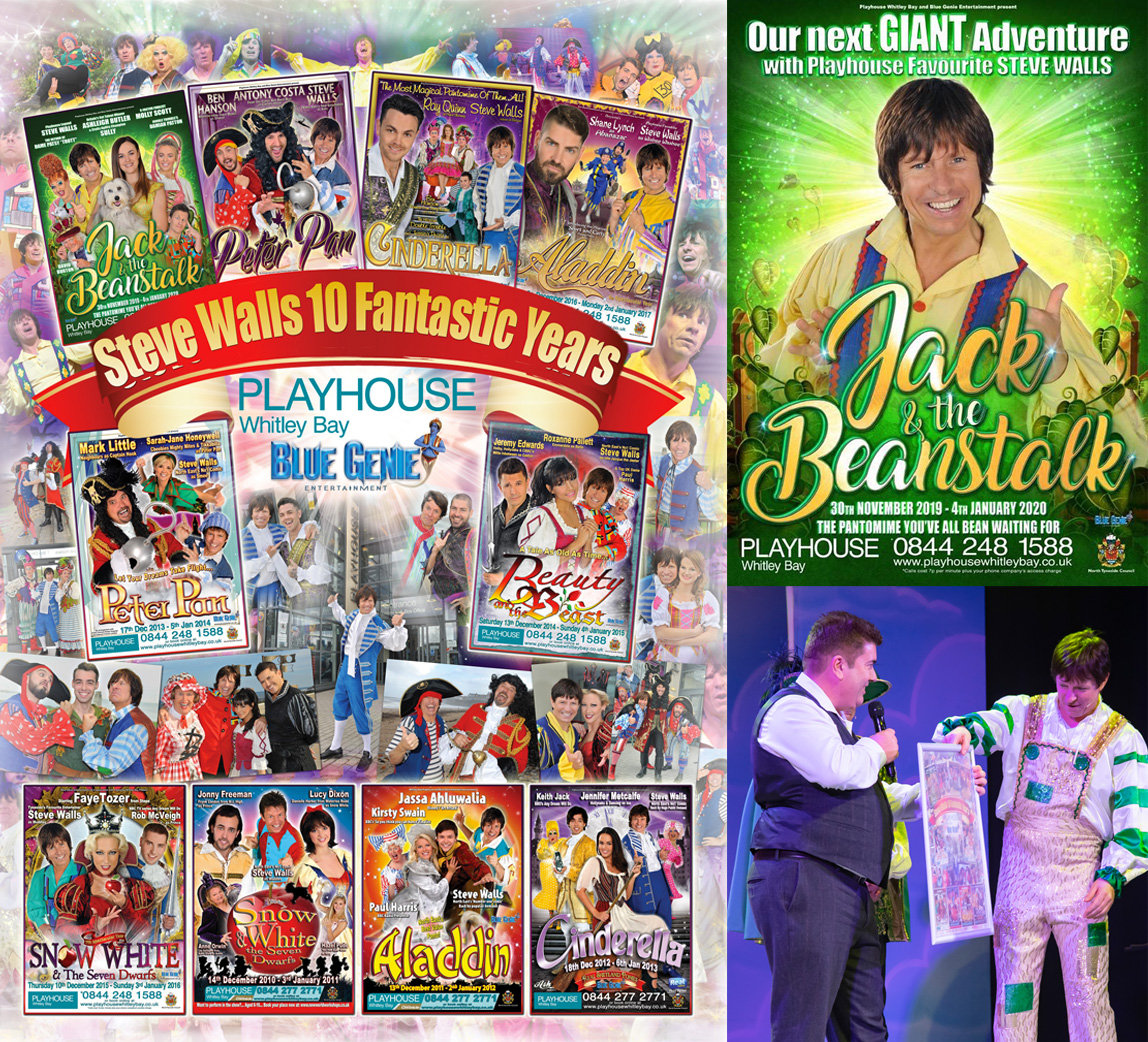 Jack & The Beanstalk in 2019 /20 marked Steve’s 10th year running at the Playhouse Whitley Bay. Producer Gary Telfer presented Steve with a framed Collage.